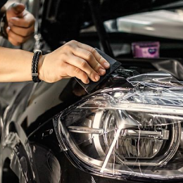 Поверхность передней оптики тщательно очищается и обезжиривается для обеспечения хорошего сцепления с защитной пленкой.