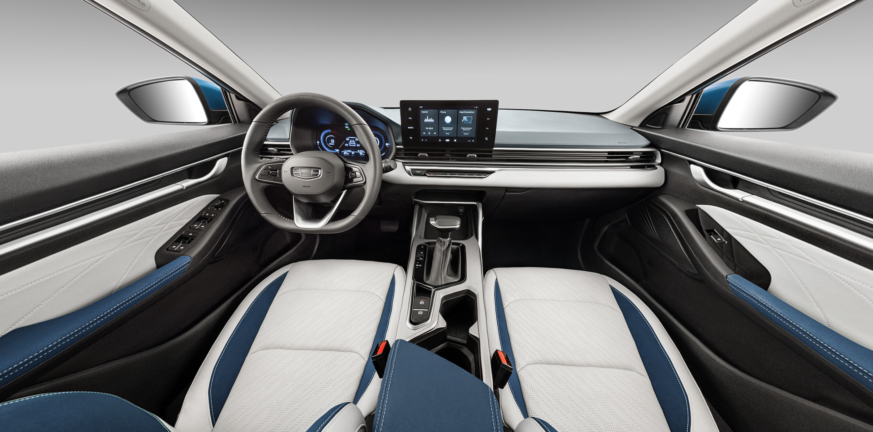 Интерьер Geely Emgrand выполнен с акцентом на комфорт и удобство. Внутри автомобиля используются качественные материалы, что создает приятную атмосферу. Передняя панель имеет современный дизайн с интуитивно понятной компоновкой. Центральная консоль включает в себя сенсорный экран мультимедийной системы, которая поддерживает Bluetooth, USB и AUX, что позволяет подключать смартфоны и наслаждаться музыкой.