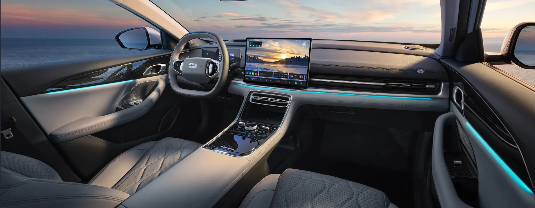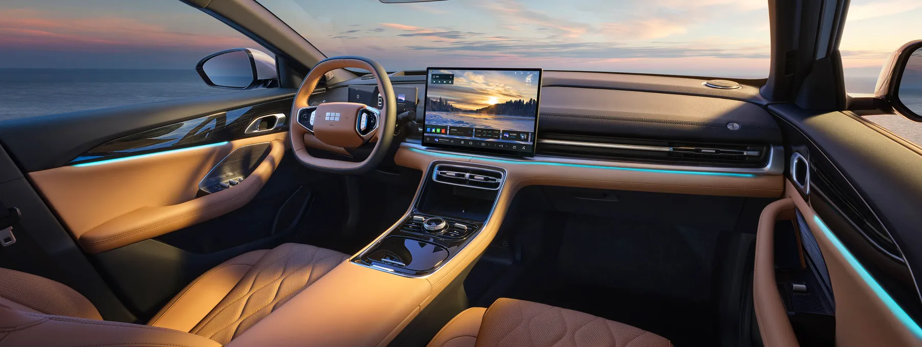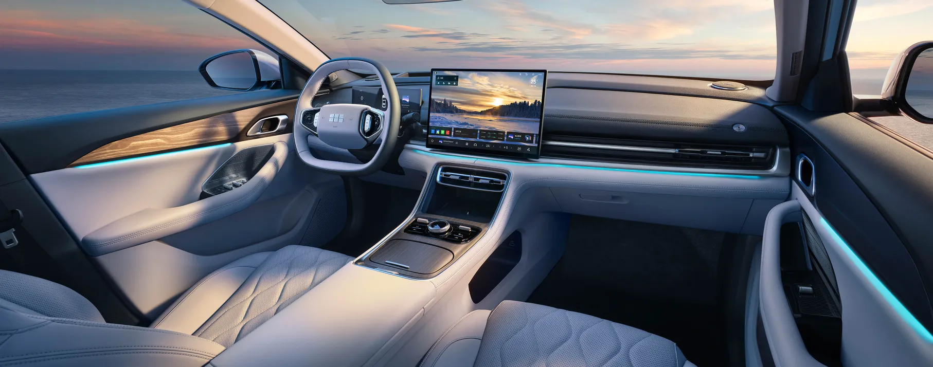 Салон оснащён 15,4-дюймовым центральным экраном с разрешением 2.5K, 8,8-дюймовой цифровой приборной панелью и проекционным дисплеем. Мультимедийная система Flyme Auto от Meizu работает на базе Galaxy NOS с поддержкой Android Auto и CarPlay.