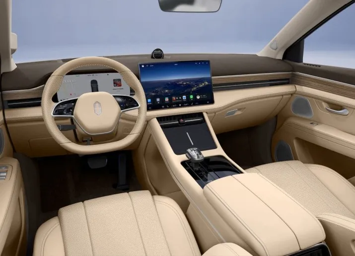 Салон M7 выполнен только из качественных материалов. Установлены 10,25-дюймовая цифровая приборная панель и 15,6-дюймовый центральный дисплей с разрешением 2K. Мультимедийная система работает на HarmonyOS 3.0 от Huawei с поддержкой Android Auto и Apple CarPlay. Сиденья первых двух рядов оснащены электрорегулировками, подогревом, вентиляцией и массажем. Отделка сидений — натуральная кожа Nappa.
