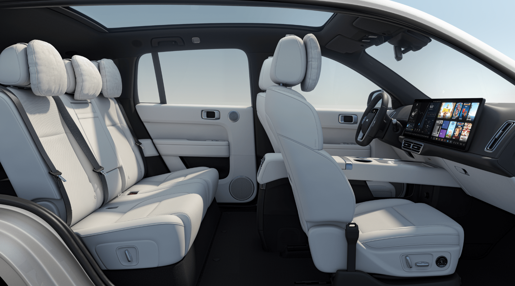 Когда сиденья первого ряда сложены, они соединяются с сиденьями второго ряда, позволяя свободно вытянуть ноги. Во втором ряду максимальное пространство для ног составляет 1135 миллиметров, а подушки сидений имеют длину 534 миллиметра, обеспечивая отличную поддержку ног и комфортную посадку