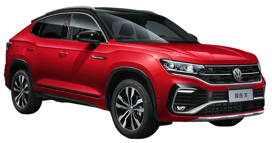 - Спортивный облик: Tayron X выделяется агрессивным и динамичным дизайном. Его купеобразная форма кузова придает автомобилю спортивный вид, а низкая линия крыши и широкие колесные арки подчеркивают его мощный характер.
