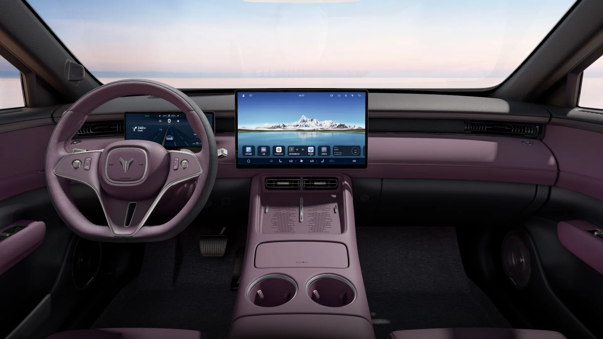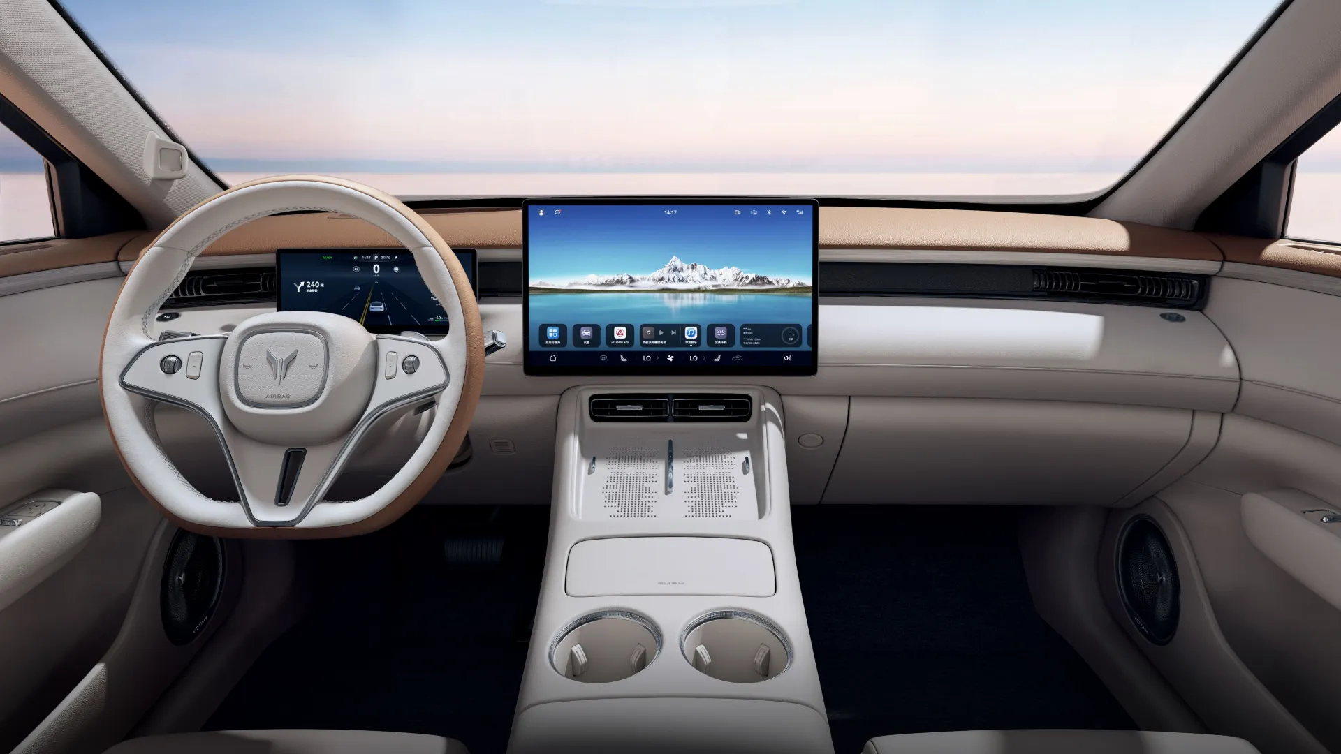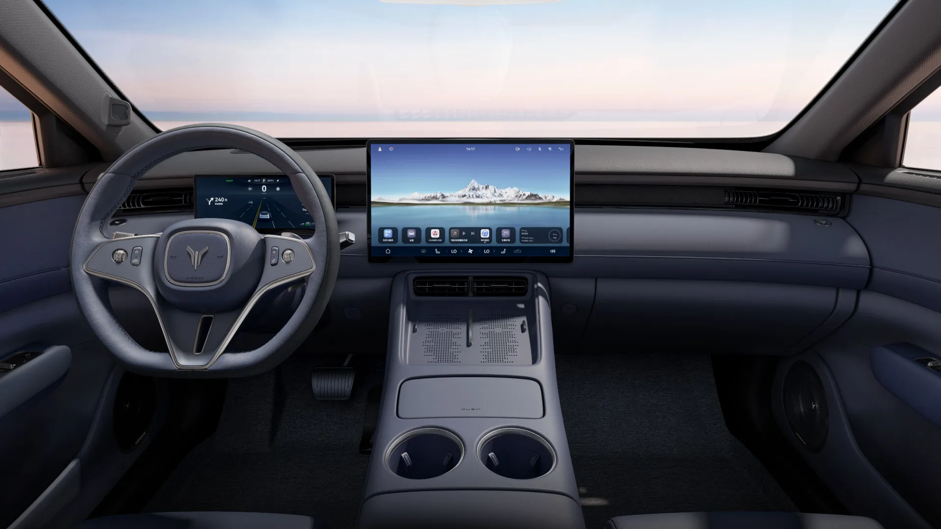 Интерьер впечатляет инновационным подходом к организации пространства. После прошедшего рестайлинга в 2025 году устанавливают два основных экрана: 12,3″ мини‑дисплей за рулём и крупный 15,6″ сенсорный экран на центральной консоли. Теперь в авто современная компоновка: плавающий цифровой кластер, большой центральный экран и HUD-проекция на лобовое стекло (Head-Up Display).