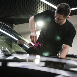 Лобовое стекло тщательно очищается от грязи, пыли и жира, а также обезжиривается для обеспечения хорошего сцепления с защитной пленкой.