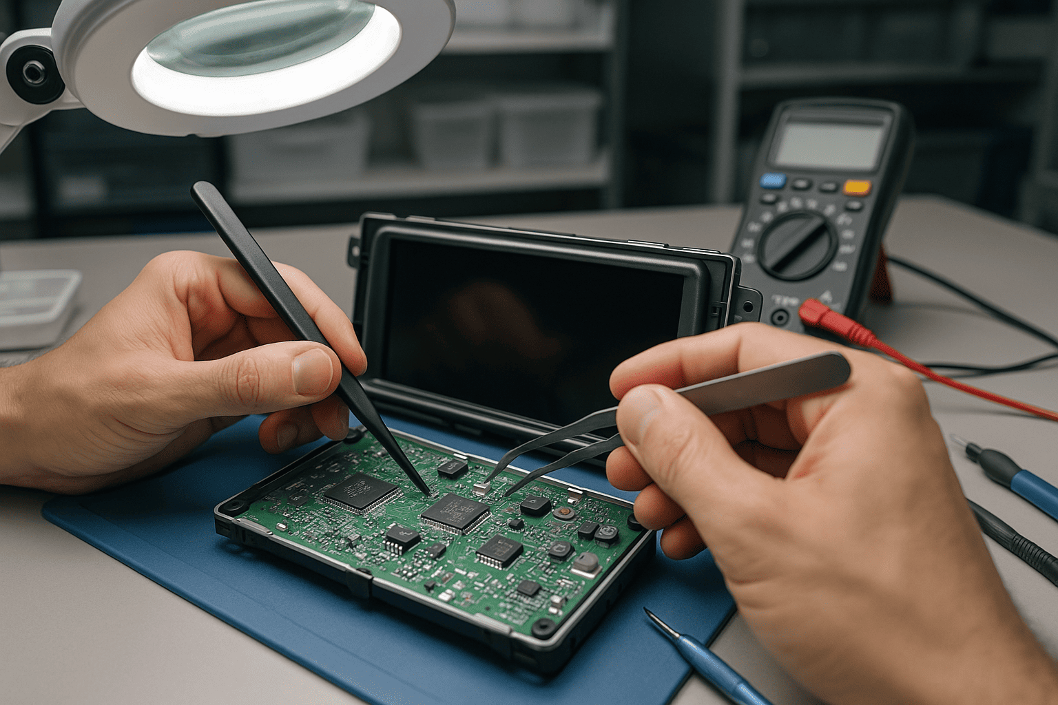 ΠΠ° ΠΎΡΠ½ΠΎΠ²Π΅ Π΄ΠΈΠ°Π³Π½ΠΎΡΡΠΈΠΊΠΈ ΠΌΡ Π²ΡΠΏΠΎΠ»Π½ΡΠ΅ΠΌ ΡΠΎΡΠ΅ΡΠ½ΠΎΠ΅ Π²ΠΌΠ΅ΡΠ°ΡΠ΅Π»ΡΡΡΠ²ΠΎ. ΠΡΠΎ ΠΌΠΎΠΆΠ΅Ρ Π±ΡΡΡ ΠΏΠ΅ΡΠ΅ΠΏΡΠΎΡΠΈΠ²ΠΊΠ° ΠΏΠ°ΠΌΡΡΠΈ ΠΏΡΠΎΠ³ΡΠ°ΠΌΠΌΠ°ΡΠΎΡΠΎΠΌ, Π·Π°ΠΌΠ΅Π½Π° Π΄Π΅ΡΠ΅ΠΊΡΠ½ΠΎΠ³ΠΎ ΡΠΈΠΏΠ° ΠΈΠ»ΠΈ Π²ΠΎΡΡΡΠ°Π½ΠΎΠ²Π»Π΅Π½ΠΈΠ΅ ΠΊΠΎΠ½ΡΠ°ΠΊΡΠΎΠ² Π½Π° ΠΏΠ»Π°ΡΠ΅. Π Π°Π±ΠΎΡΠ°Π΅ΠΌ Π½Π° ΡΡΠΎΠ²Π½Π΅ ΠΌΠΈΠΊΡΠΎΡΠ»Π΅ΠΊΡΡΠΎΠ½ΠΈΠΊΠΈ, ΠΈΡΠΏΠΎΠ»ΡΠ·ΡΡ ΠΏΠ°ΡΠ»ΡΠ½ΡΠ΅ ΡΡΠ°Π½ΡΠΈΠΈ ΠΈ Π΄ΡΡΠ³ΠΎΠ΅ Π²ΡΡΠΎΠΊΠΎΡΠΎΡΠ½ΠΎΠ΅ ΠΎΠ±ΠΎΡΡΠ΄ΠΎΠ²Π°Π½ΠΈΠ΅, ΡΡΠΎΠ±Ρ ΡΡΡΡΠ°Π½ΠΈΡΡ ΠΏΡΠΈΡΠΈΠ½Ρ Π±Π»ΠΎΠΊΠΈΡΠΎΠ²ΠΊΠΈ, Π° Π½Π΅ Π΅Π΅ ΡΠΈΠΌΠΏΡΠΎΠΌΡ.