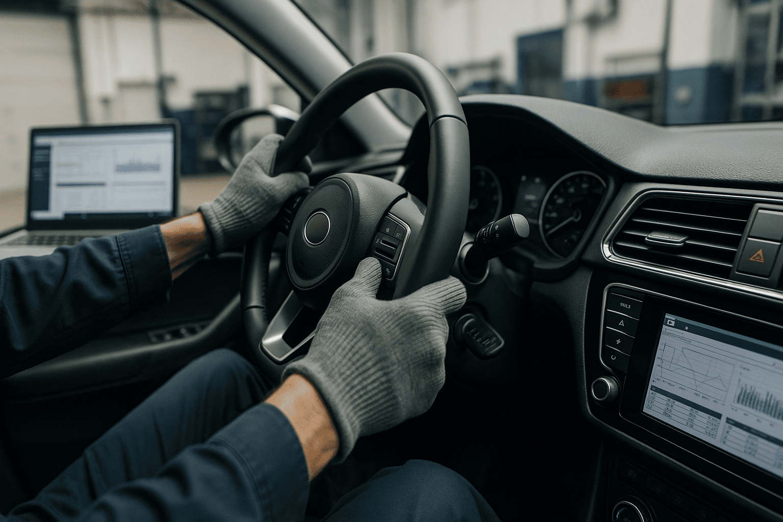 Перед началом работ мастер подключает диагностический сканер к разъему OBD-II вашего автомобиля. Сканер считывает коды неисправностей из электронного блока управления (ЭБУ) рулевого управления и определяет, действительно ли проблема решается калибровкой. Это исключает лишние работы и точно определяет вектор настройки системы.