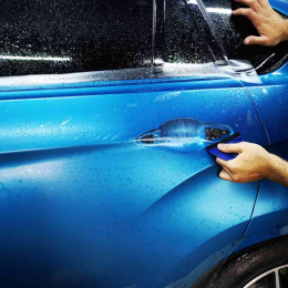 Перед оклейкой автомобиль необходимо тщательно подготовить: мойка, удаление загрязнений, обезжиривание поверхности. Это обеспечивает максимальное сцепление пленки с кузовом и исключает появление пузырей и складок.