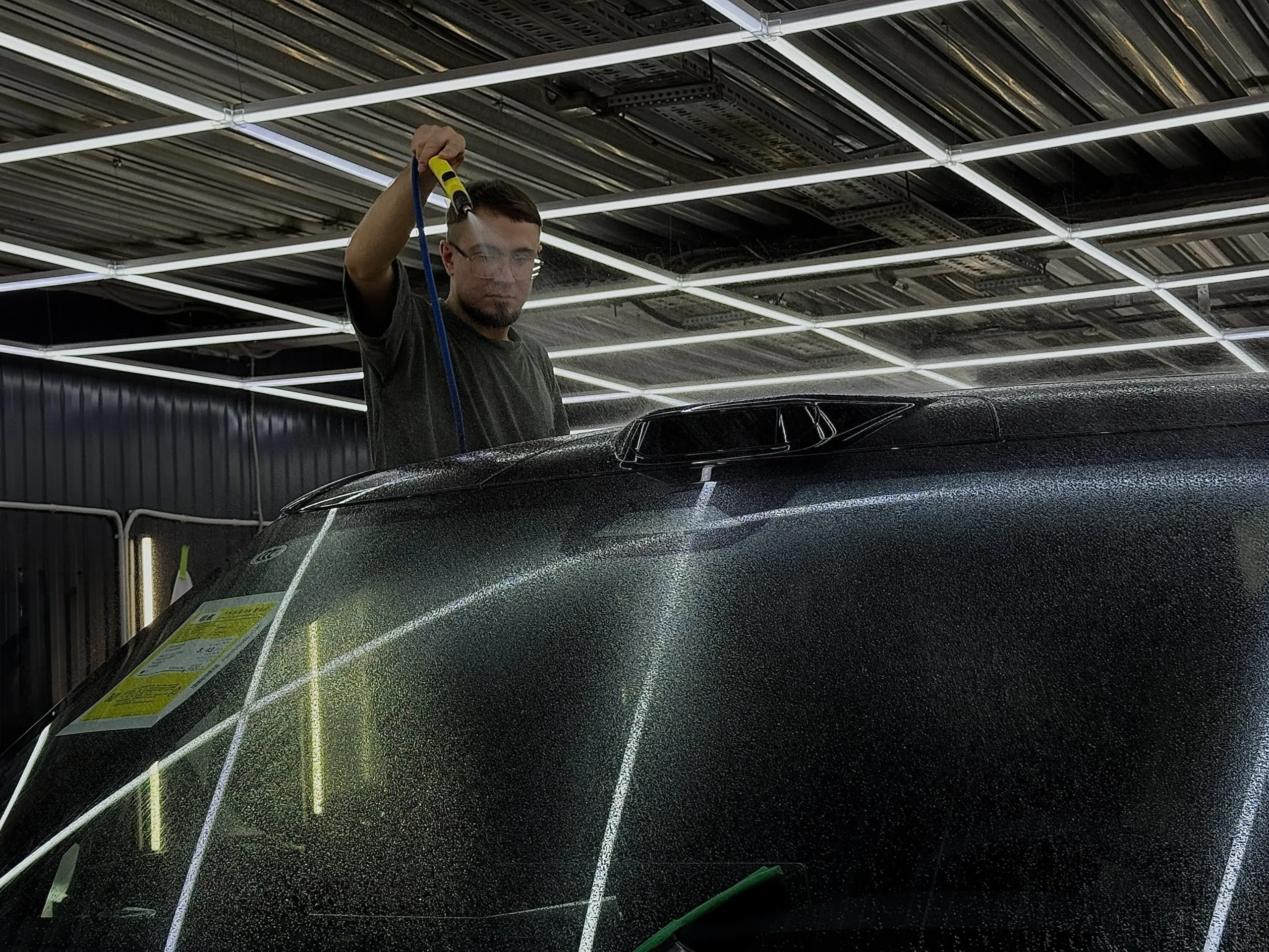 Первые две недели мойте автомобиль только руками, без использования автоматических моек и щеток. Это нужно для окончательной полимеризации клеевого слоя. После этого срока разрешена бесконтактная мойка высоким давлением, но струю следует направлять вдоль швов и краев пленки. Избегайте абразивных средств и восков на основе растворителей. Используйте специальные шампуни для виниловых пленок или мягкие автошампуни, которые сохраняют защитный слой покрытия.