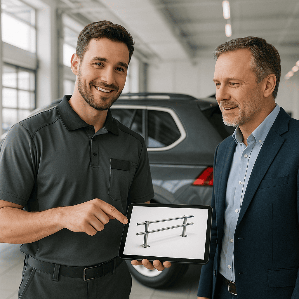 Мы изучаем марку и модель вашего автомобиля, чтобы предложить оптимальный тип рейлингов: штатные или универсальные. Учитываем ваши задачи: перевозка лодки, велосипедов или объёмного багажа. Вместе выбираем конструкцию (поперечины, продольные дуги) и материал, который идеально впишется в облик авто и выдержит планируемые нагрузки.