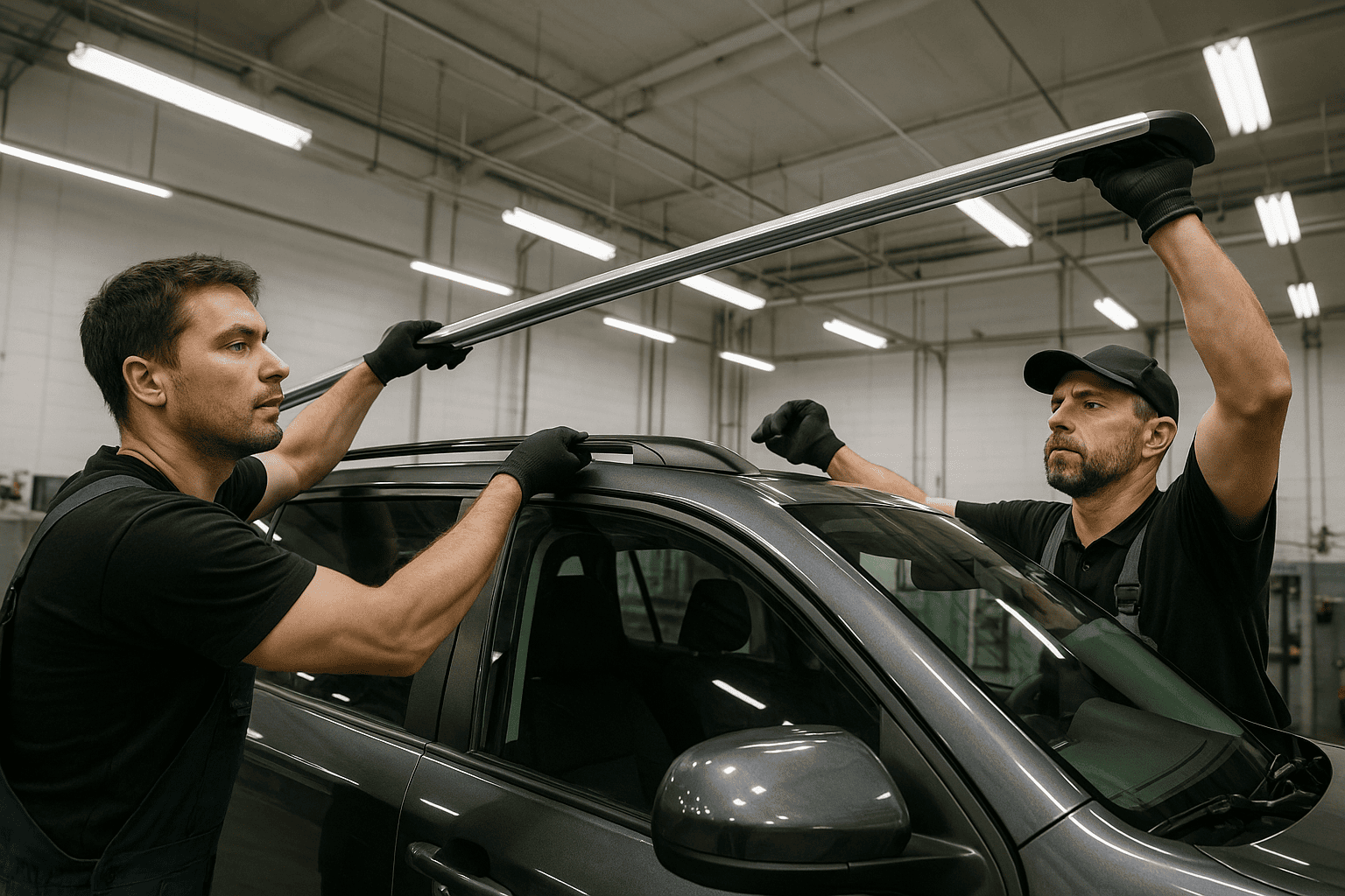 Автомобиль тщательно моется, а зона будущего монтажа обезжиривается. Далее мастер с ювелирной точностью выполняет разметку под крепёжные элементы, сверяясь с технической документацией. Это самый ответственный этап, где недопустимы ошибки — от точности разметки зависит надежность всей конструкции и герметичность крыши.