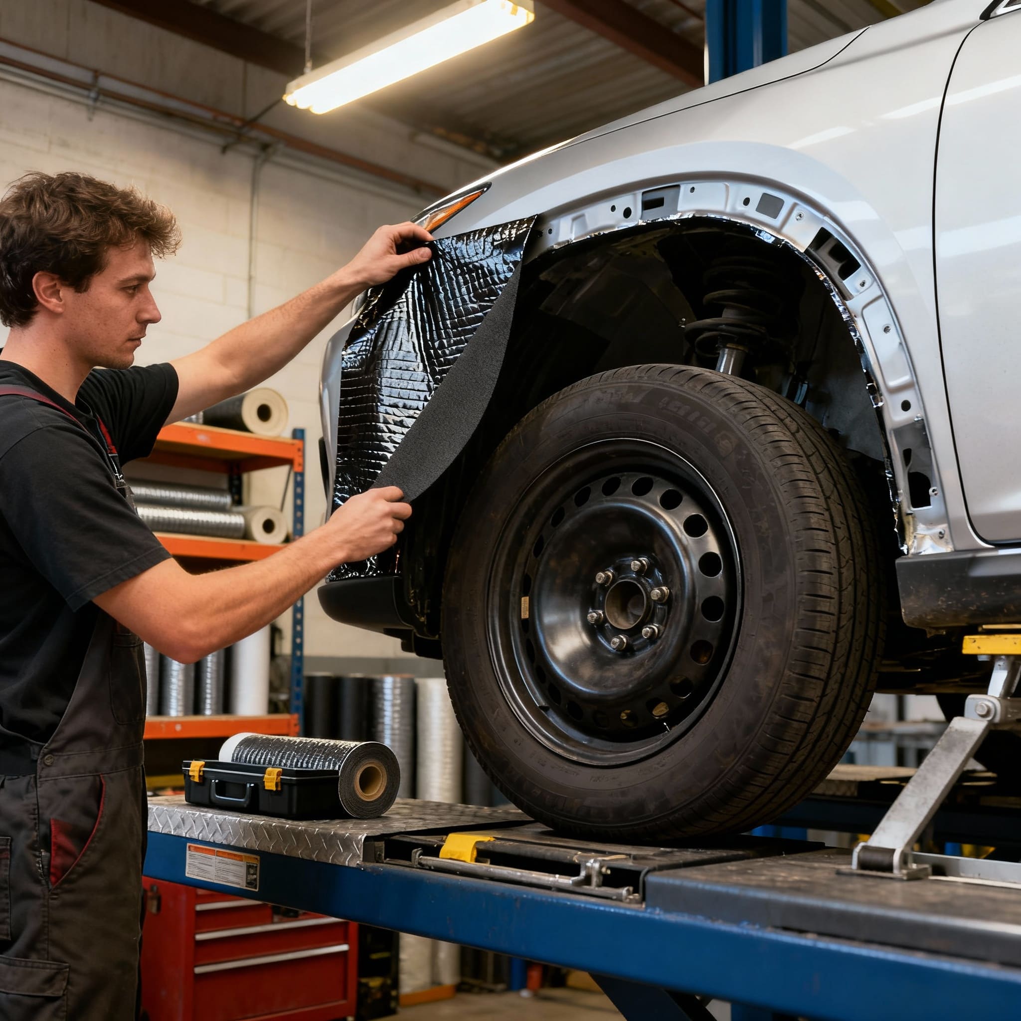 После нанесения всех слоев мы проводим финальный контроль: проверяем качество прилегания по всей площади, отсутствие воздушных пузырей и надежность фиксации. Только убедившись в безупречном результате, мы устанавливаем колеса на место. Автомобиль готов к эксплуатации, а вы — к тест-драйву в тихом салоне!