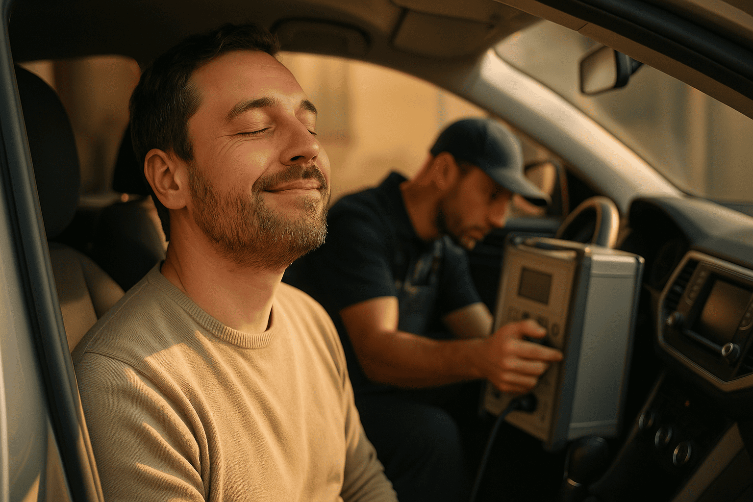 Мастер осматривает салон вашего автомобиля, чтобы выбрать оптимальное место для монтажа. Мы учитываем модель авто, эргономику и ваши пожелания. Чаще всего блок устанавливается скрыто в бардачок, нишу или под сиденье, чтобы сохранить эстетику интерьера и не мешать вождению.