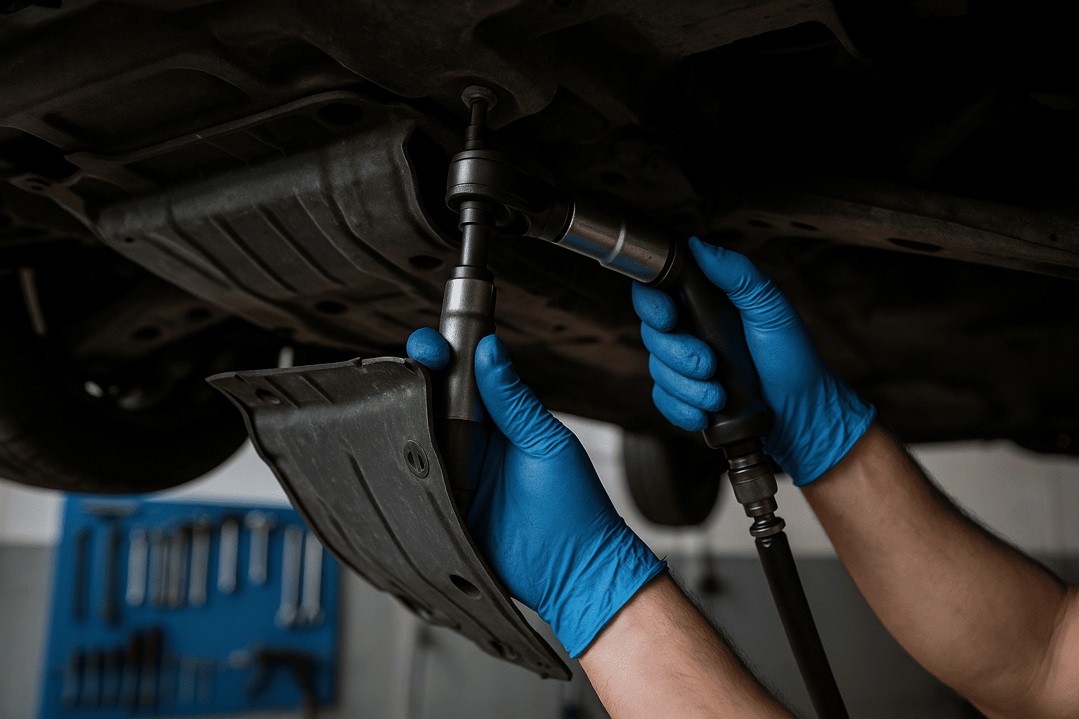 Специалист детально изучает конструкцию днища вашего автомобиля, определяя критические точки: расположение двигателя, бака, элементов выхлопной системы. На основе этого подбирается оптимальный тип защиты (стальная, алюминиевая или композитная) — и ее конфигурация. Это гарантирует, что защита будет идеально соответствовать модели вашего авто и обеспечит максимальное покрытие уязвимых зон.