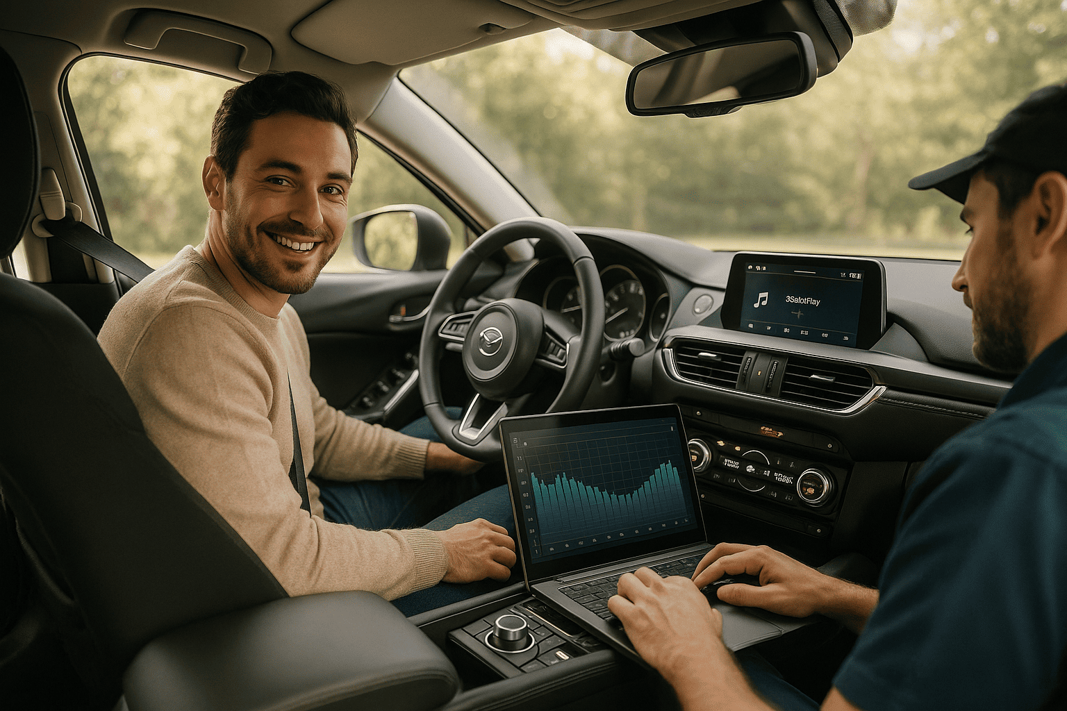 Запускаем аудиосистему и проводим финальную подгонку. С помощью профессионального тестового микрофона и программного обеспечения мы корректируем АЧХ, выравнивая громкость по каналам и настраивая частоты под акустику вашего салона. Вы лично оцениваете чистоту и глубину звучания, чтобы результат полностью удовлетворил ожидания.