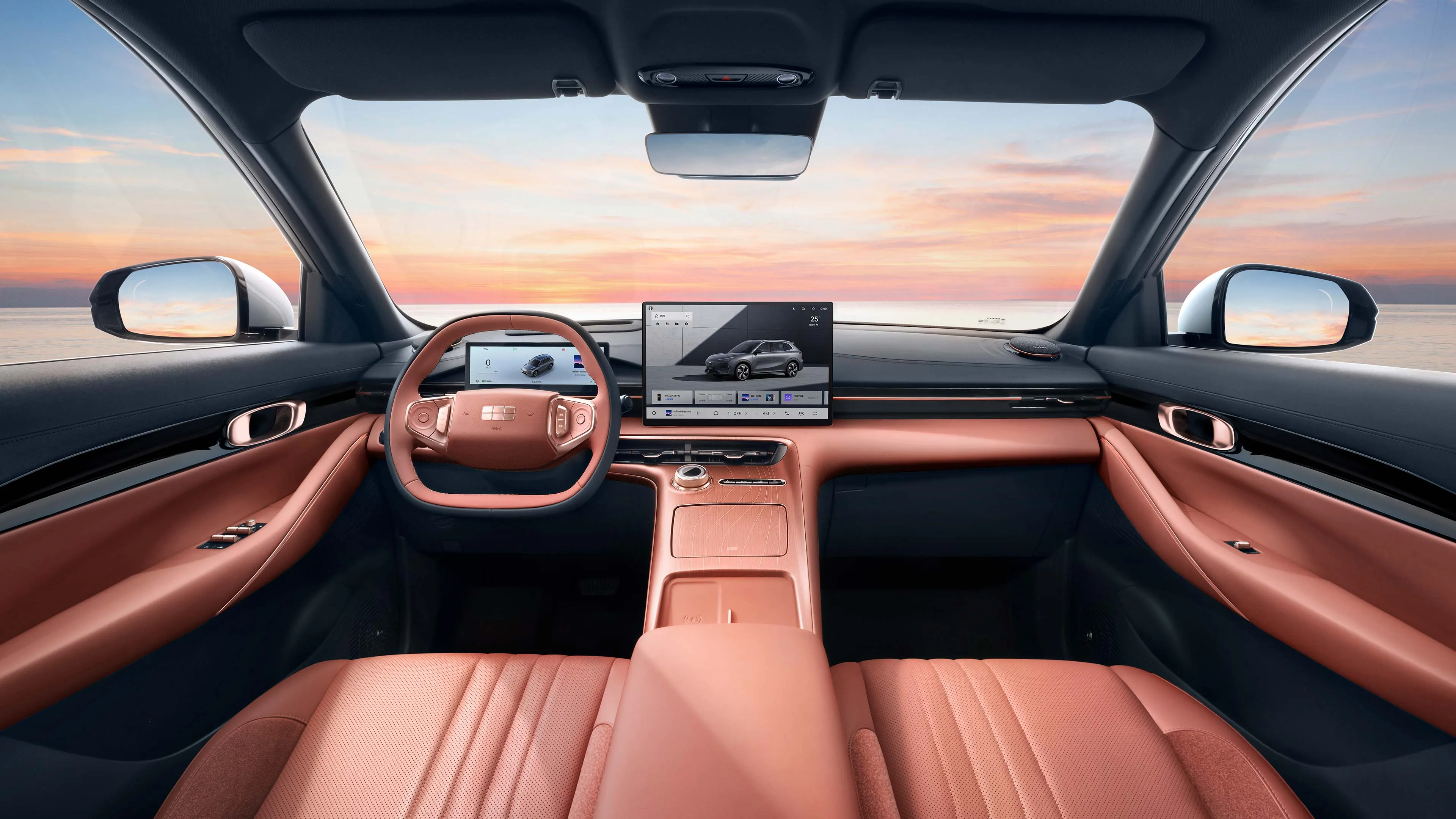 Экстерьер Galaxy E5 выполнен в стиле, характерном для ультрасовременных электромобилей: скрытые ручки дверей, светодиодная оптика и скошенная линия крыши, улучшающая аэродинамику. Доступно восемь цветов, включая матовые оттенки.