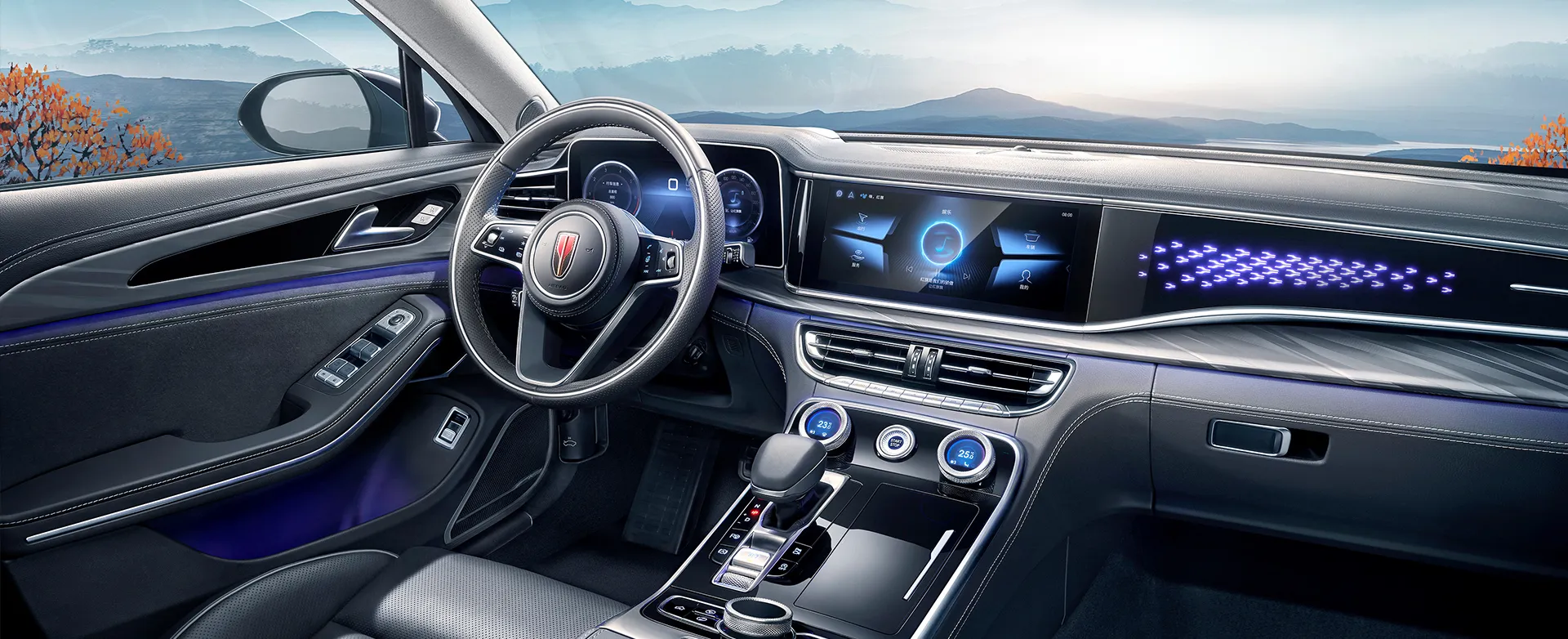 В салоне Hongqi H9 отделка премиум-класса: кожа Nappa, алюминий, натуральное дерево и хромированные элементы. Светлые тона создают ощущение простора и лёгкости, а атмосферная подсветка подчёркивает роскошь. Передние сиденья оснащены широким набором регулировок, подогревом, вентиляцией и функцией массажа. Для пассажиров сзади доступны персональные экраны управления климатом и настройкой передних кресел.
