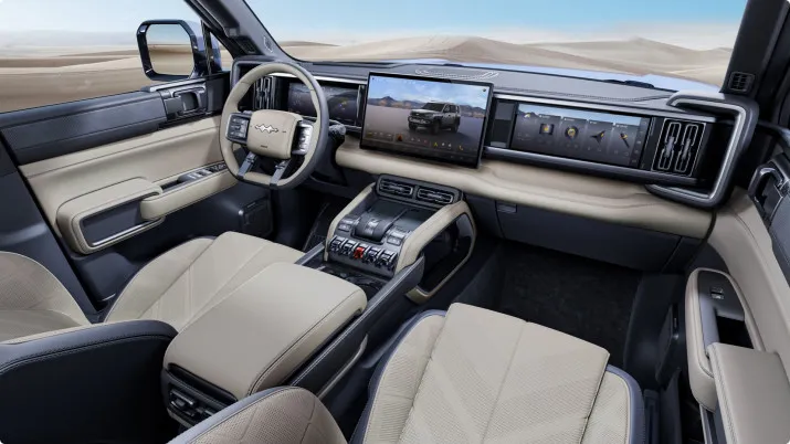 - Агрессивный стиль: Leopard 5 выделяется своим мускулистым и агрессивным дизайном. Передняя часть автомобиля украшена массивной решеткой радиатора и узкими светодиодными фарами, что придает ему современный и мощный вид.