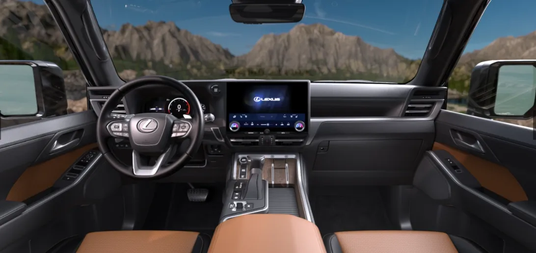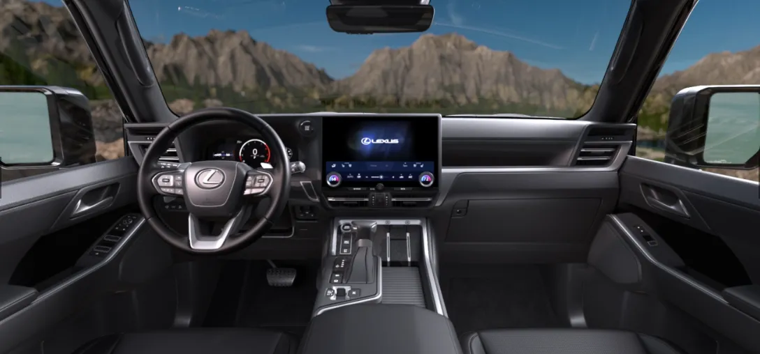 Экстерьер Lexus GX: массивный алюминиевый капот и характерная решётка радиатора с сетчатым рисунком (подчёркивают премиальный статус). Фары и решётка расположены высоко, что обеспечивает лучшую защиту на бездорожье. Сзади авто привлекает внимание фирменная L-образная световая подпись Lexus. Короткие свесы спереди и сзади повышают проходимость на сложных участках дороги. Салон выполнен по концепции Tazuna, установлен 14-дюймовый сенсорный экран. Все элементы управления находятся под рукой водителя. Доступны 5-ти или 6-местная компоновка со складывающимися задними сиденьями.