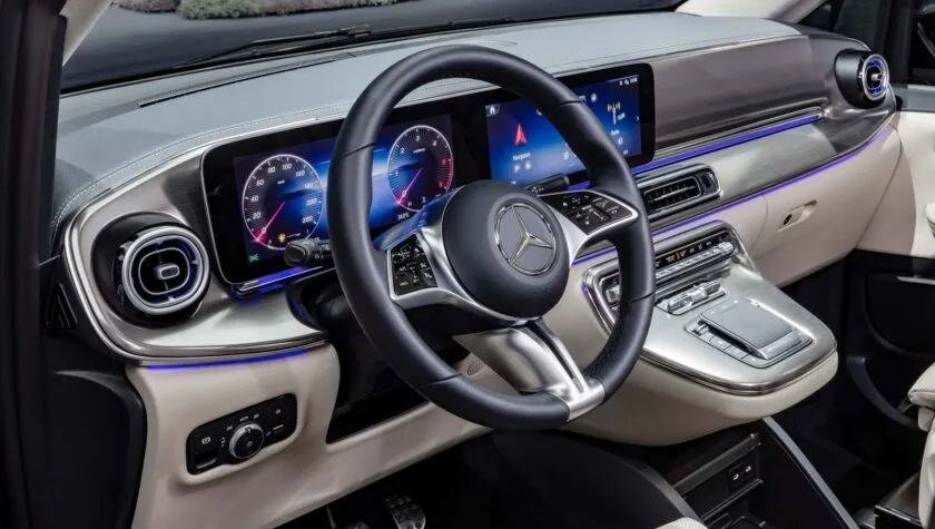 Модель оборудована двухлитровым бензиновым турбомотором серии M274 с отдачей до 190 л.с. — уверенное движение по трассе и стабильный разгон: примерно 9,8 секунд до 100 км/ч. Средний расход в смешанном цикле — около 9,2 литра на 100 км. Первые ощущения: “…будто управляешь не минивэном, а полноценным бизнес-седаном в кузове большого MPV”.