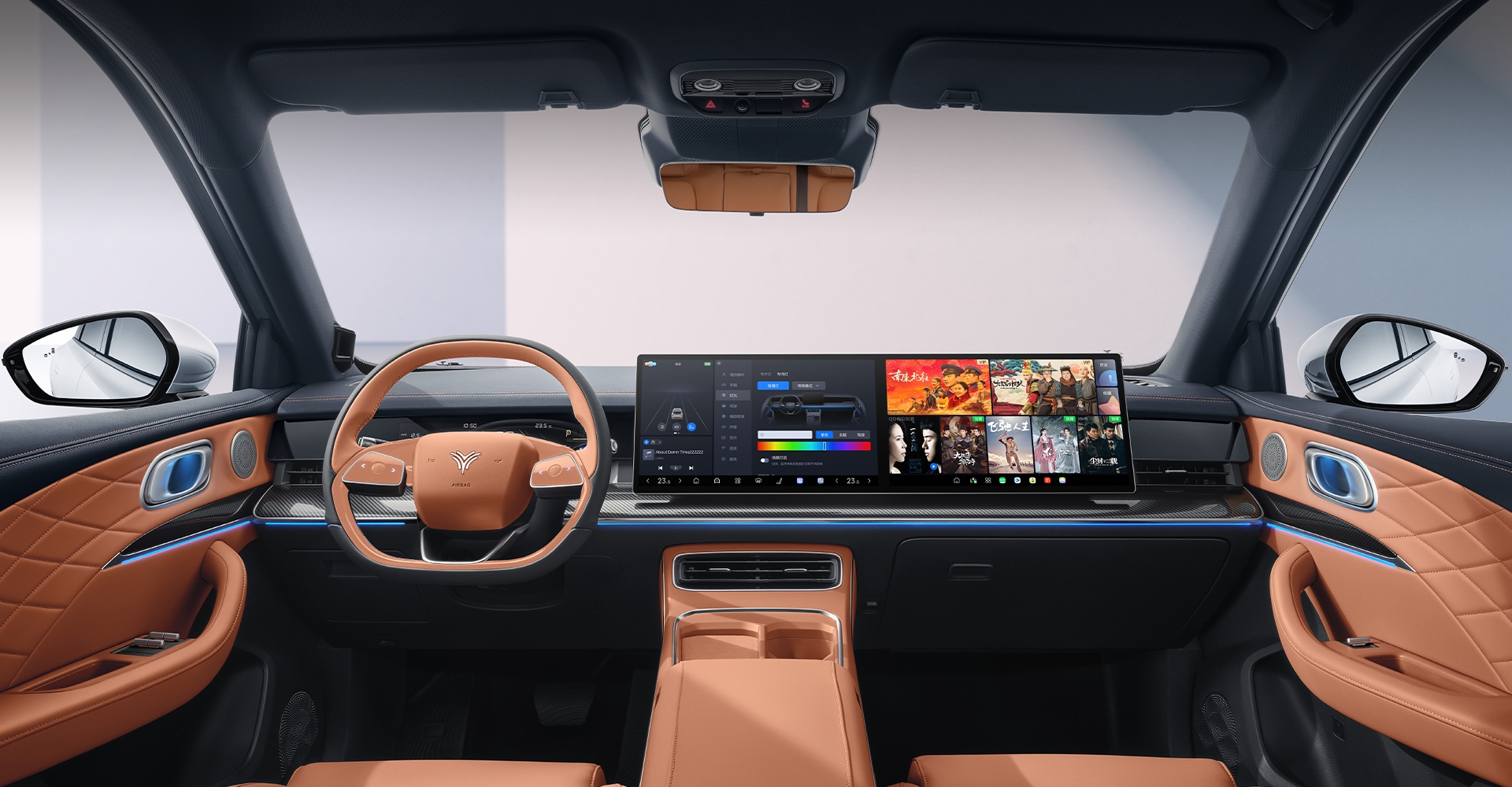 Достаточно смелый дизайн: авто выделяется узкими LED-фарами, скрытыми ручками и двухцветными кузовными акцентами в версии RED VERSION. В салоне — минималистичные линии с премиальными материалами: мягкая экокожа, металлические вставки, многоуровневое освещение. Ключевые элементы интерьера: