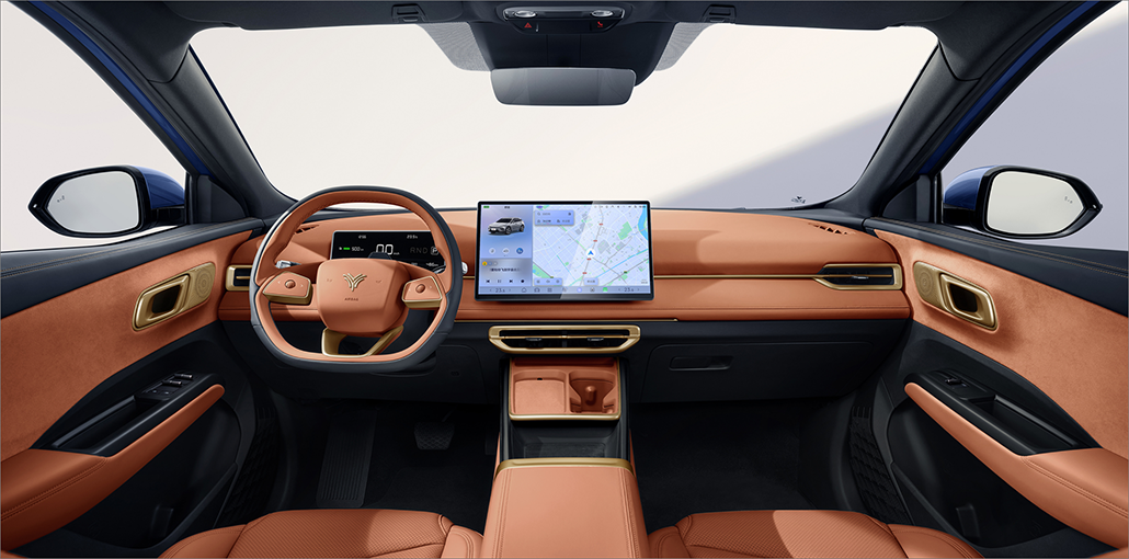 Салон отделан мягкими и качественными материалами. Сиденья — из экокожи, руль — с кожаной отделкой. В старших комплектациях передние сиденья регулируются с помощью электропривода. Центральный экран — 15,6 дюйма (Plus, Pro) или 10,1 дюйма. Цифровая приборная панель (8,9 дюйма) отображает всю необходимую информацию об автомобиле в режиме реального времени. Климат-контроль, подогрев передних сидений и зеркал доступны в зависимости от версии.
