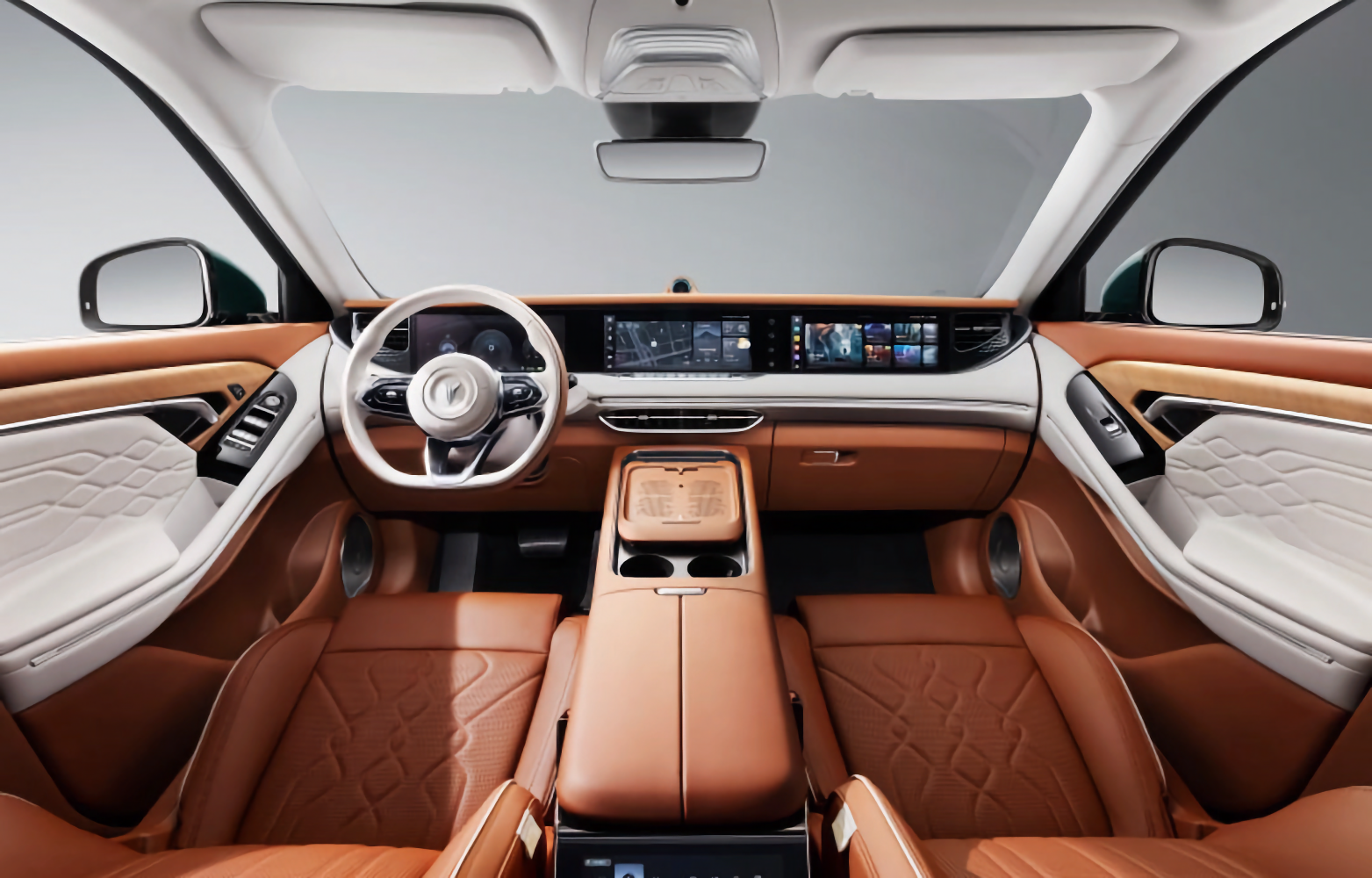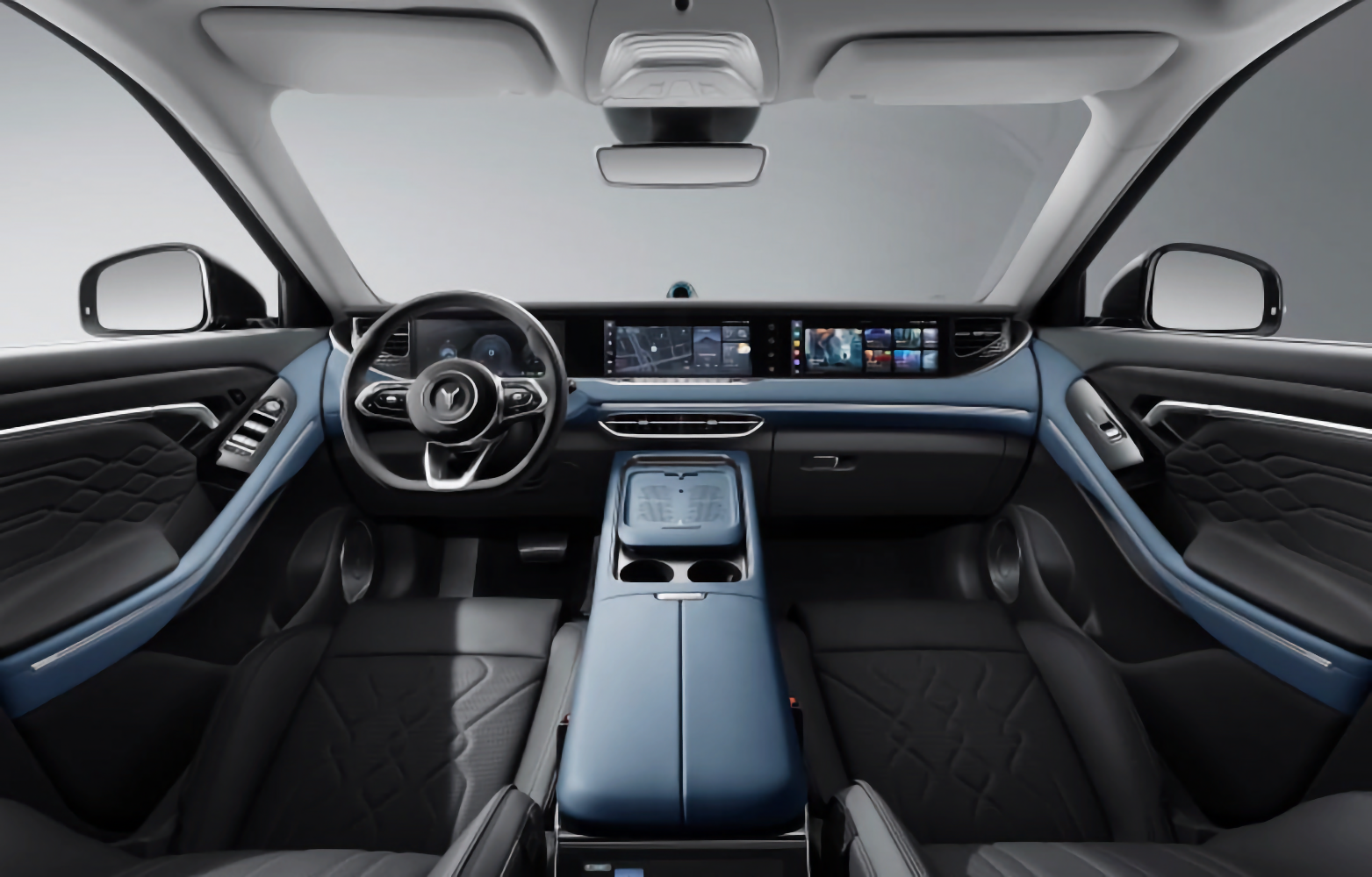 Фары, связанные мерцающей полосой с символикой бренда, придают внешности автомобиля Voyah атмосферу раскрытых крыльев К'юнь П'ень из китайских мифов, формируя узнаваемый и неповторимый облик.
