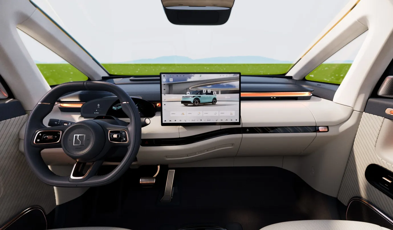 Салон Zeekr Mix предлагает два варианта цвета на выбор: серый и бежевый. Каждый автомобиль оснащен замшевым потолком и большим люком. Во втором ряду расположены три сиденья с подставками для ног с электроприводом. Передние сиденья могут поворачиваться “лицом” к задним пассажирам, а центральный туннель трансформируется в полноценный столик.